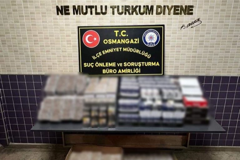 Bursa Osmangazi İlçe Emniyet Müdürlüğü Suç Önleme ve Soruşturma Büro Amirliği ekipleri, Ş.Ş. ve E.Ş. isimli şahısların kaçak tütün ürünleri bulundurdukları ve satışını yaptıklarını tespit etti. Bunun üzerine Çiftehavuzlar Mahallesi'ndeki iş yeri ve ikametlerde yapılan aramalarda, 2 adet otomatik sigara doldurma makinası, 192 bin adet (9 bin 600 paket) tütün doldurulmuş sigara, 91 bin adet boş makaron ve 90 kilogram kıyılmış kaçak tütün ele geçirildi.