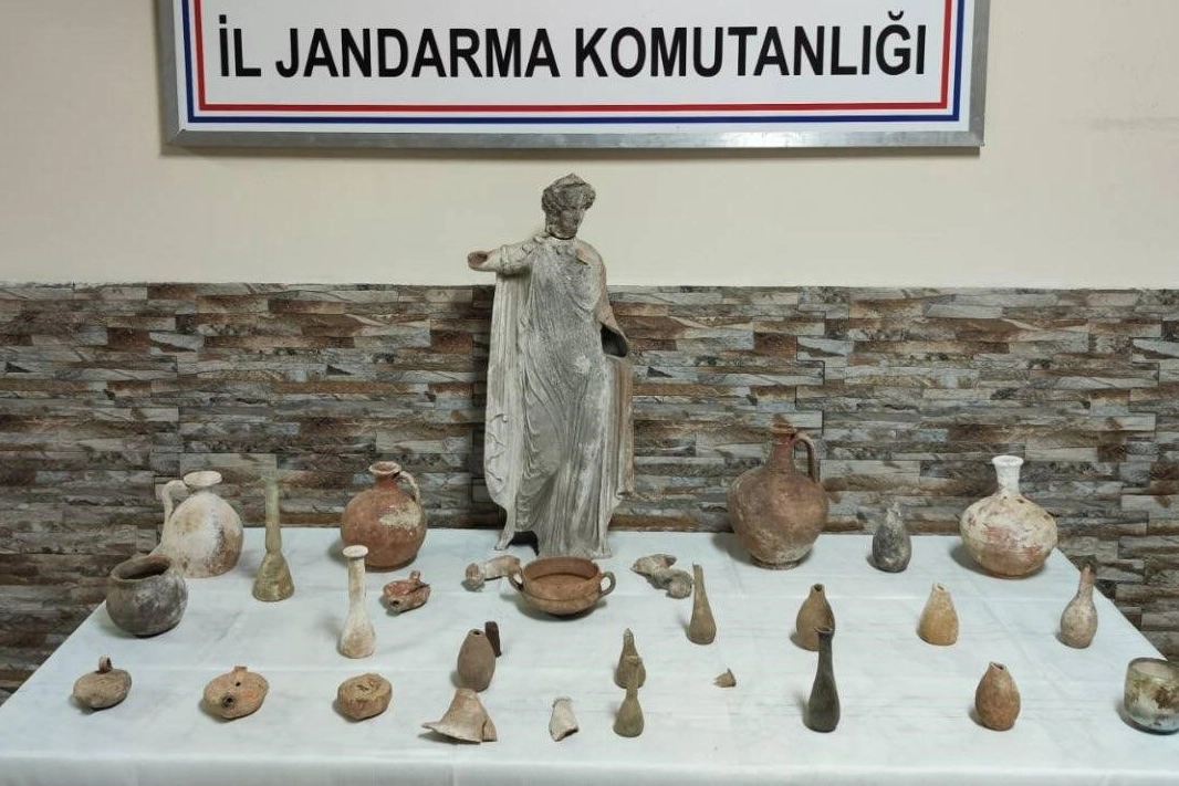 Bursa'da tarihi eser operasyonu gerçekleştirildi. Roma ve Bizans dönemi eserleri ele geçirildi. Bursa’nın Nilüfer ilçesi Akçalar Mahallesi’nde jandarma ekipleri tarihi eser kaçakçılarına göz açtırmadı. Nilüfer İlçe Jandarma Komutanlığı tarafından bugün düzenlenen operasyonda, Roma ve Bizans dönemlerine ait olduğu değerlendirilen 29 tarihi obje ile 60 santimetre uzunluğunda bir heykel ele geçirildi. Operasyonda ayrıca define aramalarında kullanılan bir el dedektörü bulundu. Tarihi eserler Bursa Müze Müdürlüğü’ne teslim edilirken, şüpheliler hakkında adli işlem başlatıldı.
