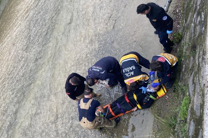 Bursa'nın Yıldırım ilçesinde dereye düşen genç adam, kalp masajıyla hayata döndürüldü.
