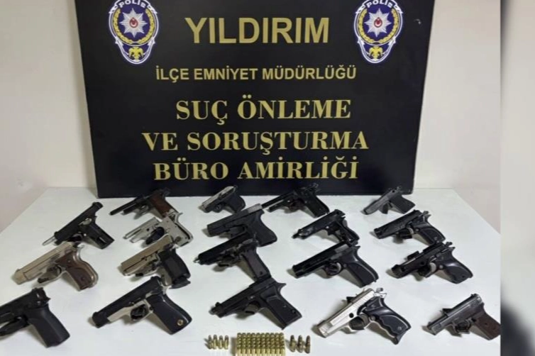 Bursa'da kaçak silah imalatı yaptığı belirlenen bir atölye takibe alındı. Soruşturma Yıldırım İlçe Emniyet Müdürlüğü Suç Önleme ve Soruşturma Büro Amirliği (SÖS) ekiplerinin başarılı çalışmasıyla sonuçlandı. Yıldırım SÖS ekiplerinin titiz takibi sonucunda yapılan baskında 5 adet ruhsatsız tabanca, 14 adet kurusıkı tabanca, 27 adet şarjör, 63 adet çeşitli çaplarda fişek, silah yapımında kullanılan 14 parça araç-gereç ve 19 adet farklı türde silah parçası ele geçirildi.