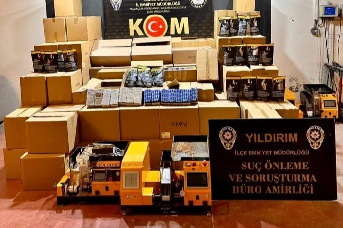 Bursa’da polis ekiplerince yasa dışı sigara imalatına yönelik düzenlenen operasyonda çok sayıda kaçak tütün mamulü ele geçirilirken, bir kişi gözaltına alındı. Bursa İl Emniyet Müdürlüğü’ne bağlı Yıldırım İlçe Emniyet Müdürlüğü ile Kaçakçılık ve Organize Suçlarla Mücadele (KOM) Şube Müdürlüğü ekipleri, yasa dışı yollardan sigara imalatı yapıldığı bilgisi üzerine çalışma başlattı. Yapılan çalışmalar kapsamında Yıldırım ilçesinde bulunan bir iş yerine operasyon düzenlendi. Operasyonda 460 kilogram tütün, 310 bin adet makaron ile 2 adet sigara sarma makinesi ele geçirildi. Olayla ilgili U.T.T. isimli şüpheli yakalanarak gözaltına alındı. Şüpheli hakkında, Kaçakçılıkla Mücadele Kanunu’na muhalefet suçundan tahkikat başlatıldığı öğrenildi.