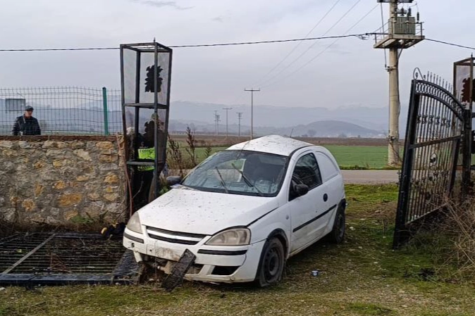 Bursa'nın İnegöl İlçesi'nde meydana gelen kazada bir otomobil, evin bahçe kapısına çarptı. Kazada yaralanarak baygınlık geçiren sürücü, saatler sonra donmak üzereyken bulundu.