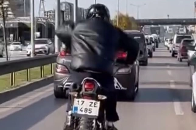 Bursa 'da seyir halindeki bir sürücü motosikletini ata biner gibi sürdü. Trafiği tehlikeye düşüren o anlar kameraya yansıdı. Nilüfer ilçesinde İzmir Yolu üzerinde ilerleyen bir motosiklet sürücüsü, trafikte yaptığı sıra dışı hareketlerle hem diğer sürücülerin hem de çevredekilerin dikkatini çekti. Seyir halindeyken motosikletine at biner gibi davranan sürücü, zaman zaman ayağa kalkarak, zaman zaman da sele üzerinde ileri-geri hamleler yaparak ilerledi. Yoğun trafikte araçların arasından kıvrak hareketlerle geçen sürücünün, motosikleti bir ulaşım aracı gibi değil de adeta bir gösteri sahnesi gibi kullandığı gözlendi. Sürücünün kimliği henüz tespit edilemezken, polis olayla ilgili çalışma başlattı.