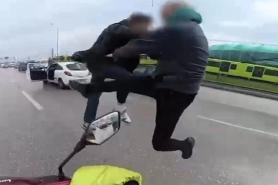 Bursa'da iki sürücü arasında 'yol verme' tartışması nedeniyle çıkan kavgada tarafların birbirine uçan tekmeyle saldırdığı anlar kameraya yansırken, görüntüler üzerine harekete geçen polis iki sürücüyü de gözaltına aldı. Sürücülerin ehliyetine el konuldu, idari ceza uygulanıp, psikotekniğe sevk edildi.