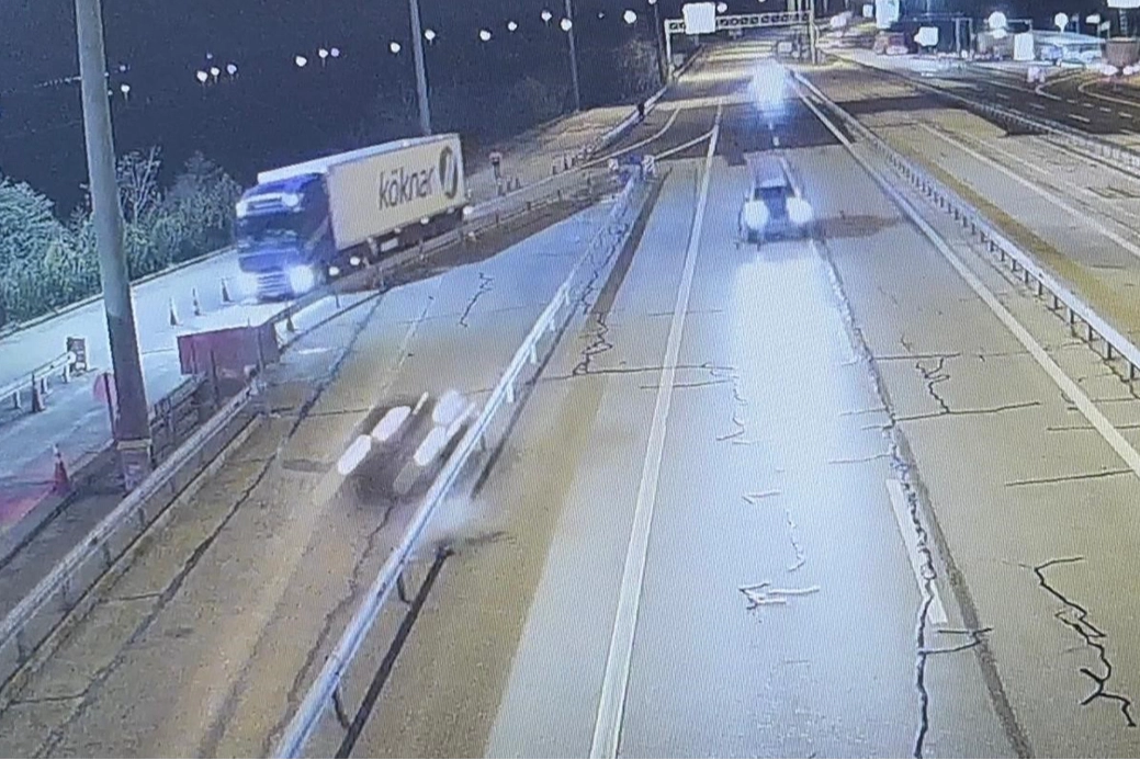 Edirne’de otoyolda ters yöne giren alkollü sürücü, faciaya davetiye çıkardı. Ters yönde ilerleyen otomobilin bariyerlere çarptığı kazada 2 kişi yaralanırken, kaza anı kameralara yansıdı.