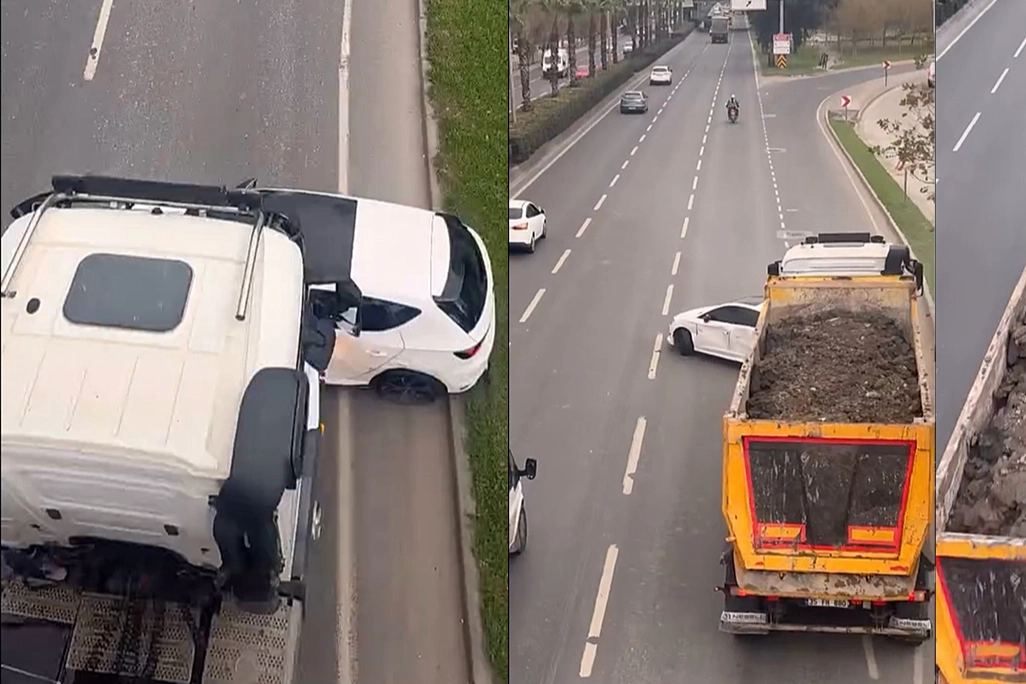 Olay, bugün öğle saatlerinde meydana geldi. Edinilen bilgiye göre, Konak’tan Bornova istikametine giden 35 FH 880 plakalı hafriyat yüklü kamyon, Bayraklı ilçesi Ankara Caddesi üzerinde 34 GCA 141 plakalı bir otomobil ile çarpıştı. Kamyon, önüne aldığı otomobili yaklaşık 100 metre sürükledikten sonra durabildi. Araçta mahsur kalan sürücünün büyük korku yaşadığı ve olay yerinde sinir krizi geçirdiği iddia edildi. Korku dolu anların yaşandığı olay sonrası çevredekiler, otomobildeki sürücünün yardımına koştu. Yaşanan ilginç kaza bir vatandaşın cep telefonu tarafından kaydedildi.