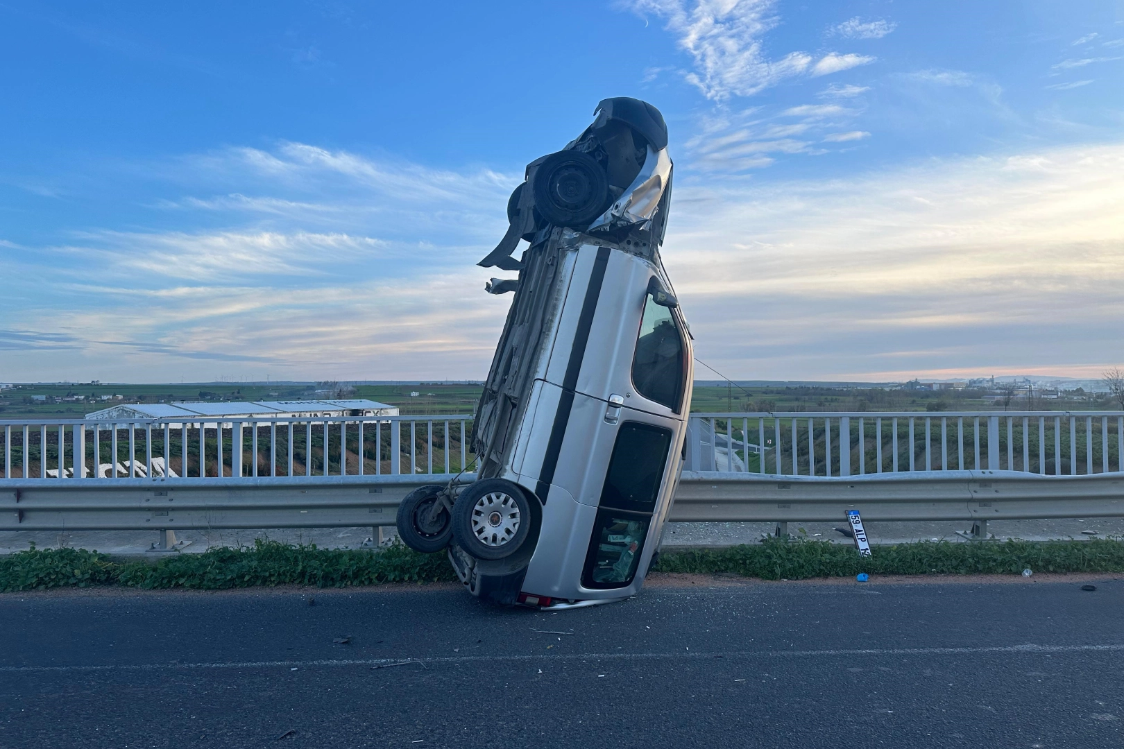 Muratlı–Büyükkarıştıran karayolu üzerinde A.Ç.’nin kullandığı 59 ALP 120 plakalı hafif ticari araç, köprü üzerinde kontrolden çıkarak bariyerlere çarptı ardından dik şekilde durdu. Görenleri hayrete düşüren kazada sürücü A.Ç. ile yolcu H.D. yaralandı. İhbar üzerine olay yerine polis, sağlık ve itfaiye ekipleri sevk edildi. Yaralılar, olay yerinde yapılan ilk müdahalenin ardından ambulansla Tekirdağ Şehir Hastanesi Acil Servisi’ne kaldırıldı.