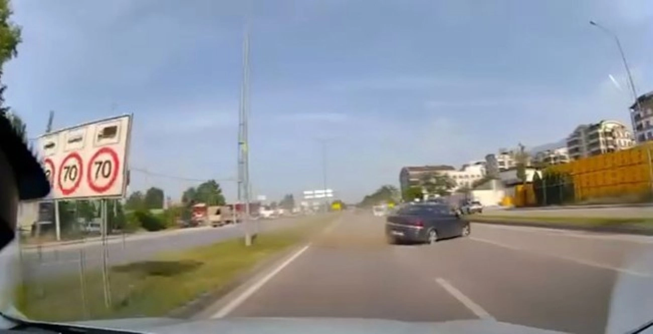 Bursa’da hareket halindeyken lastiği patlayan otomobil, orta refüjü aşarak karşı şeride geçti. Saniyelerle facianın kıl payı atlatıldığı diğer istikamete giden otomobildeki araç kamerası tarafından kaydedildi.