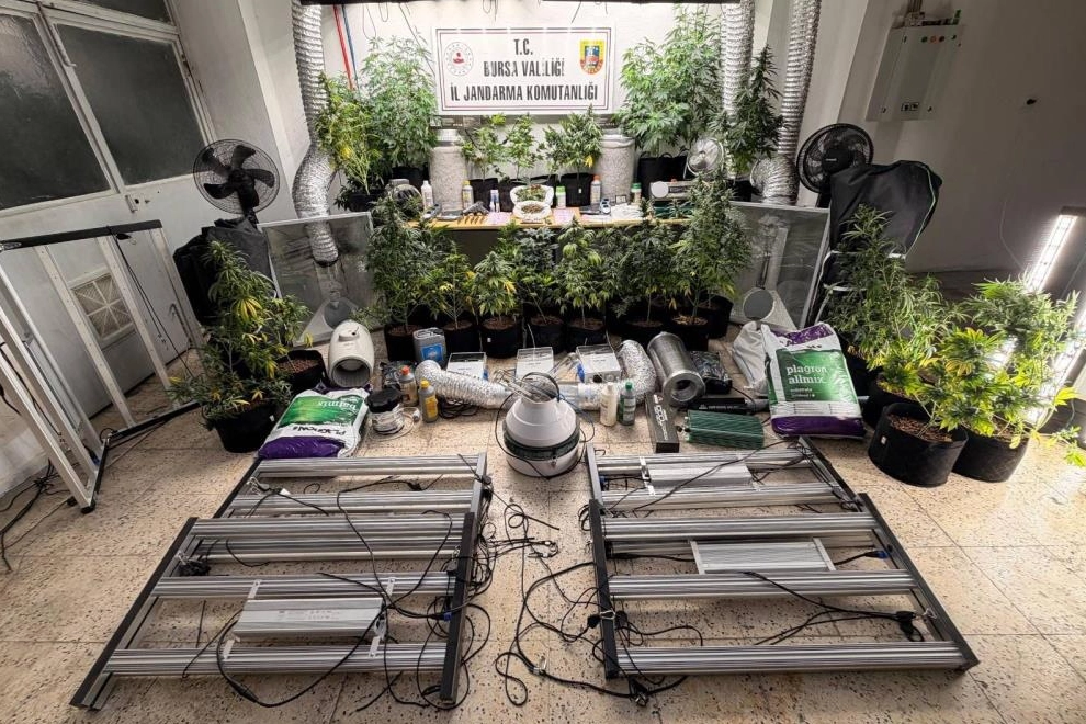 Bursa'nın Nilüfer ilçesinde evini uyuşturucu imalathanesine çeviren şahıs jandarma operasyonuyla yakalandı. Evde yüklü miktarda uyarıcı madde, iklimlendirme sistemi, pres makinesi ve paketlemede kullanılan 350 adet kilitli poşet ele geçirildi. İl Jandarma Komutanlığı Narkotik Suçlarla Mücadele ekipleri, bir ihbarı değerlendirip Cumhuriyet Başsavcılığı'nın talimıtayla operasyon yaptı. Nilüfer ilçesinde uyuşturucu imalathanesine çevrilen bir evde 4 parça halinde 755 gram kubar esrar, 27 kök skunk bitkisi, 4 kök kenevir bitkisi, 4 adet iklimlendirme sistemi, 1 adet pres makinesi, çok sayıda şeffaf poşet ve kilitli şeffaf poşet ele geçirldi. Bir kişi gözaltına alınırken, şahsın sorgusunun ardından adliyeye sevk edileceği öğrenildi