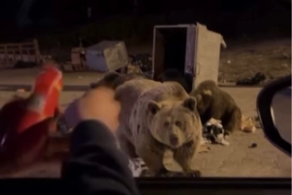 Ayıyı sucukla beslemek isteyen adam, onun yırtıcı bir hayvan olduğunu unutunca saldırı kaçınılmaz oldu. Bursa’da kış uykusuna yatmayan ayılar, Uludağ'da yerleşim yerlerine inerek çöp konteynerlerini karıştırırken görüntülendi. Milli Park yetkilileri de hayvanlara her gün yiyecek bırakıp karınlarını doyuruyor. Ancak bazı vatandaşlar ayı ailesinin yanına gelip yiyecek verirken tehlikeli anlar yaşıyor. Sucuk ziyafeti çektiği anne ayının gazabına uğrayan bir maceracı o anları kayda aldı. Ayının arabaya saldırdığı anlar yürekleri ağıza getirdi.