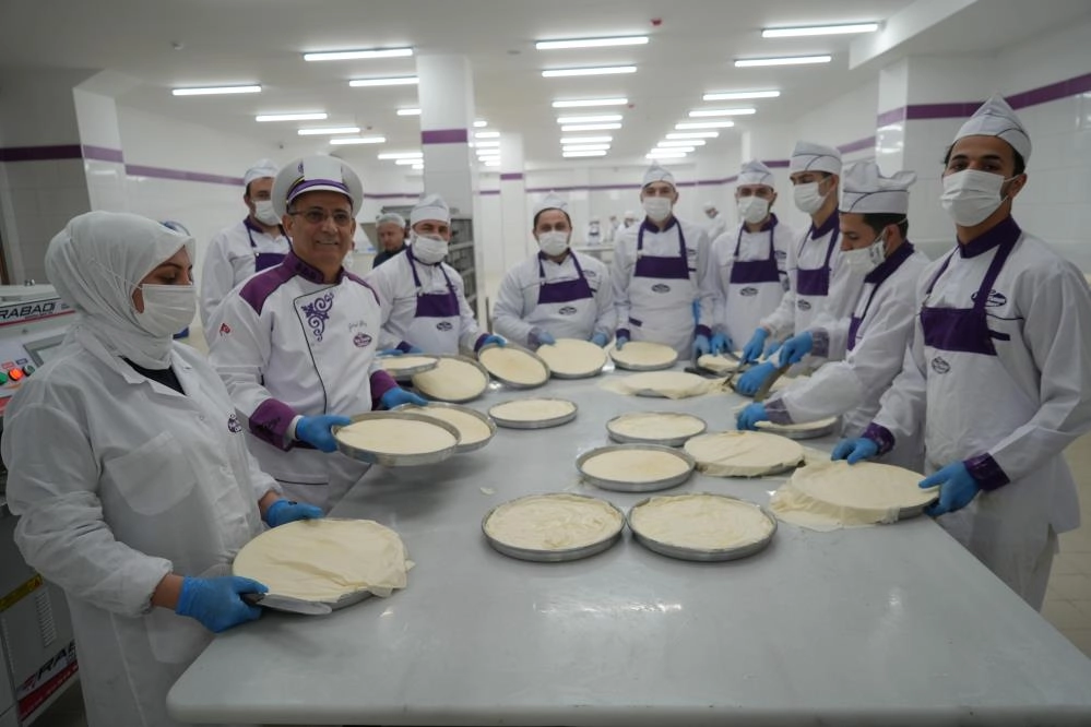 "Baklavada oyuna gelmeyin"Arge laboratuvarı, 2 adet dev soğuk hava deposu, çalışanlara ayrılan odalarıyla dikkat çeken 10 bin metrekare kapalı alana sahip baklava fabrikasında tamamen steril ortamda yapılan baklava üretimini ve baklava çeşitlerini anlatan Yüksel Aktaş, merdiven altı üretim yapanların bayram üzeri yaptığı hileleri anlattı. Aktaş, "Fıstıklı baklava yapmak için yola çıkan, ancak fıstık yerine bezelye, ıspanak veya yer fıstığı boyayıp fıstığa benzetip baklavanın içine koyuyor. Fıstığın kilosu bin 500 lira, yer fıstığının kilosunu ise 50 liraya bulabilirsin. Yer fıstığına boya katıp, bir çuval fıstıkla bir çok baklavayı yaparsın. Ispanağı öğütüp içine bir tutam fıstık koyduğun zaman görüntüsü, fıstıklı baklava gibi olur. Ancak yediğin zaman ne yediğini bilemezsin. Fıstıklı baklavada olduğu gibi cevizli baklavada da hileler yapılıyor. İrmik, ekmek kırıntısı ve yeşil mercimeğe kadar hileye başvuruluyor. Vatandaşlarımız ağız tadı ile baklava yemek veya sipariş etmek istiyorsa, fiyatı kadar aldığı yerin markasına da önem göstersin" diye konuştu.