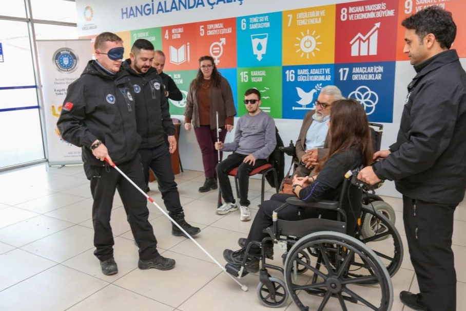 Bursa Büyükşehir Belediyesi bünyesinde personelin gönüllü katılımıyla kurulan Bursa Acil Müdahale (BAM) ekibi, özel gereksinimli bireyler için afet öncesi alınabilecek önlemler, afet anında güvenli, hızlı ve doğru şekilde tahliye edilmeleri konularında bilgilendirildi. Birinci derece deprem kuşağında yer alan Bursa'nın dirençli ve sürdürülebilir bir kent olması adına çalışmalarını sürdüren Büyükşehir Belediyesi, Afet İşleri Dairesi Başkanlığı bünyesine belediye personelinin gönüllü katılımıyla oluşturulan Bursa Acil Müdahale (BAM) ekibinin eğitim faaliyetlerine ara vermeden devam ediyor. Güvenli ve hızlı tahliye ele alındı BAM ekibine, Afet İşleri Dairesi Başkanlığı ve Sosyal Hizmetler Dairesi Başkanlığı Engelli Hizmetleri Şube Müdürlüğü iş birliğiyle afet öncesinde, anında ve sonrasında engelli bireylere nasıl yaklaşılacağı konusunda eğitim verildi. 'Kimseyi Geride Bırakmıyoruz' sloganıyla Afet Koordinasyon Merkezi'nde yapılan (AKOM) eğitimde, özel gereksinimli bireylerin güvenli, hızlı ve doğru şekilde nasıl tahliye edileceği anlatıldı. Dünya Engelliler Günü kapsamında gerçekleştirilen programda, özel ihtiyaçların değerlendirilmesi ve hassasiyetlerin operasyonel süreçlere entegre edilmesi konuşuldu. Eğitimin sonunda görme engelli bireylerin isteği doğrultusunda telsizin nasıl kullanıldığı da anlatıldı. Afet Koordinasyon Şube Müdürü Ceyhun Eskioğlu, BAM ekibine engelli bireylerin bir afet anında nasıl tahliye edilmesi, tahliyesinde hangi kuralların uygulanması gerektiğine dair kapsamlı bir bilgi verildiğini söyledi. Başkan Mustafa Bozbey'in de bu tür eğitimlere önem verdiğini hatırlatan Eskioğlu, özel gereksinimli bireylerle birlikte kimseyi geride bırakmayacaklarını söyledi.