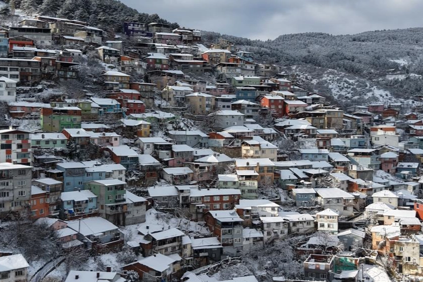 Bursa’nın sembol olmuş yerleri karla kaplanırken, kartpostallık görüntüler ortaya çıktı. Uludağ'ın eteklerinde birbirinden farklı renkleriyle cümbüş oluşturan evler havadan böyle görüntülendi. Termometrelerle hava sıcaklığını 1 derece olarak ölçerken, akşam ise bun sıcaklığın -3 olması bekleniyor.