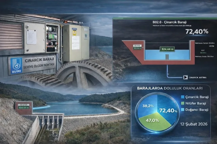 Bursa Büyükşehir Belediyesi, BUSKİ bünyesindeki SCADA Merkezi’ne Çınarcık Barajı’nı da entegre etti. Haber Giriş Tarihi: 15.02.2026 13:24 Haber Güncellenme Tarihi: Çınarcık Barajı'na teknolojik takip BURSA (İGFA) - Bursa’daki su kayıp kaçak oranlarını en aza indirmek için çalışmalarını sürdüren Bursa Büyükşehir Belediyesi, vatandaşa hizmetin en iyisini sunabilme hedefiyle teknolojinin tüm imkanlarını kullanıyor. BUSKİ’ye bağlı çalışan ve bir tesise veya işletmeye ait tüm birimlerin otomatik kontrolü ve gözlenmesi sağlayan SCADA Merkezi’yle 1000’den fazla tesisi izleyip yöneten Büyükşehir Belediyesi, kentin uzun yıllar içme suyu ihtiyacını karşılayacak olan Çınarcık Barajı’nı da sisteme entegre etti. Arızalara veya sıkıntılı noktalara merkezden anında müdahale edilebilmesini sağlayan sistemle, Çınarcık Barajı’nın su seviye bilgisi ve doluluk oranı anlık olarak takip edilebiliyor.
