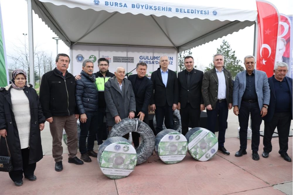 Bursa Büyükşehir Belediyesi, kırsal mahallelerin hem girdi maliyetlerini azaltmak hem de üretim gücünü artırmak amacıyla 17 ilçedeki toplam 4 bin 261 çiftçiye hibeli damla sulama borusu ve sıvı gübre desteği verdi.