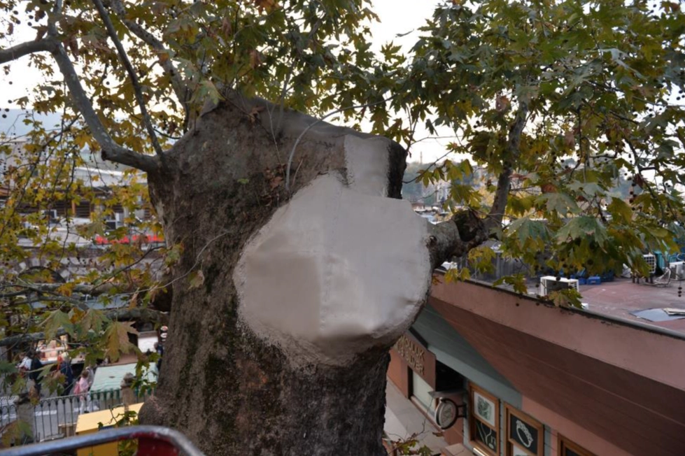 Park ve Bahçeler Dairesi Başkanlığı ekipleri tarafından yapılan incelemede, anıt ağacın açık yarasında çürümüş ve mantarlaşmış bölümler tespit edildi. Hızlı bir şekilde bakım ve restorasyon işlemlerine başlayan ekipler, özel ilaçlarla ‘çürümeye yol açan’ bakterileri temizledi. Ağacın iskeletine teller aracılığıyla destek uygulanırken, son aşamada özel yalıtım malzemesi kullanılarak ağacın açık yarası kapatıldı. Tedavi gören kısım boyanarak çınar ağacının formu yeniden düzenlendi.