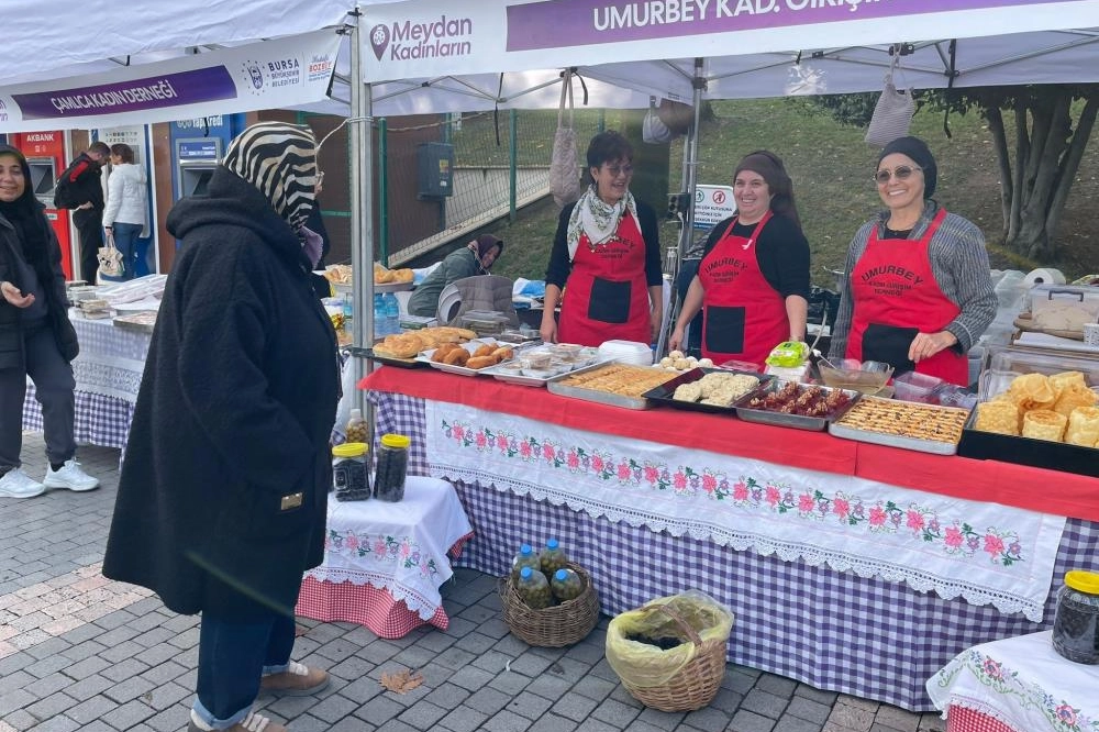 Bursa'da kadınların ürettiği el işi ürünler ile yöresel tatların sunulduğu etkinlik, hem renkli görüntüler oluşturdu hem de ziyaretçilerden yoğun ilgi gördü.