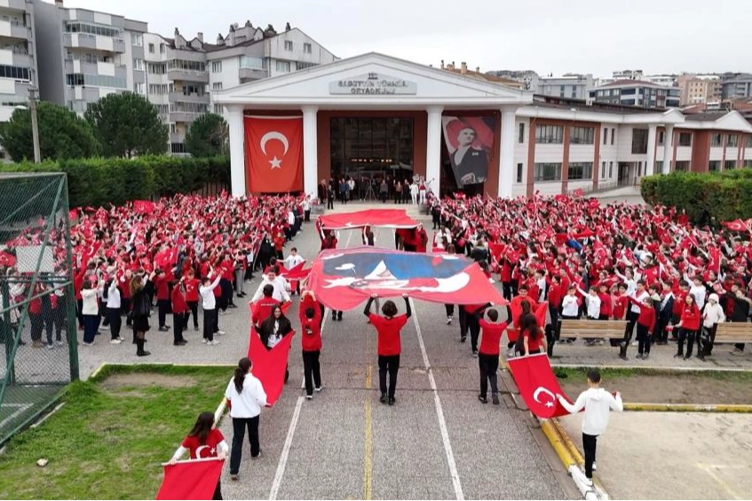 Bursa’da eğitimde akademik başarısının yanı sıra sosyal, sanatsal ve sportif faaliyetleriyle de öne çıkan Nilüfer Sadettin Türkün Ortaokulu, ikinci dönemin ilk gününde anlamlı bir etkinliğe imza attı. Milli Eğitim Bakanlığı’nın talimatı ve Türkiye Yüzyılı Maarif Modeli vizyonu doğrultusunda düzenlenen "İlk Derste Bayrak Sevgisi" temalı etkinlikte, okul bahçesi kırmızı-beyaz renklere büründü. Etkinlik kapsamında bin öğrenci, ellerinde bin Türk bayrağıyla okul bahçesinde bir araya geldi. Öğrencilerin aynı anda bayraklarını açmasıyla oluşan görüntü, görsel bir şölen oluştururken, etkinlik duygu dolu anlara sahne oldu. Programda konuşan Okul Müdürü Asım Altuntaş, bayrak sevgisinin milli kimliğin korunması ve toplumsal birlikteliğin güçlendirilmesi açısından büyük önem taşıdığını vurguladı. Altuntaş konuşmasında şu ifadelere yer verdi; "Bayrak sevgisi, bir milletin ortak değerlerine sahip çıkmasının en güçlü göstergesidir. Çocuklarımıza bu bilinci küçük yaşlarda kazandırmak, güçlü bir gelecek inşa etmenin temel şartıdır. Bugün burada ortaya çıkan tablo, birlik ve beraberliğimizin en güzel ifadesidir. Bu anlamlı etkinliğin hayata geçirilmesinde emeği geçen tüm öğretmenlerime ve öğrencilerime yürekten teşekkür ediyorum." Etkinlikler çerçevesinde Türkçe öğretmeni tarafından öğrencilere "Bayrağın öğrenciye seslenişi" konulu bir paragraf yazma çalışması da yaptırıldı. Çalışma kapsamında 6/D sınıfı öğrencisi Sena Selen tarafından kaleme alınan paragraf, içerdiği duygu ve anlatımıyla dikkat çekti. Nilüfer Sadettin Türkün Ortaokulu’nda gerçekleştirilen bu etkinlik, öğrencilerin milli ve manevi değerlerle buluşmasını sağlarken, bayrak sevgisinin eğitim yoluyla pekiştirilmesine çok önemli katkı sundu
