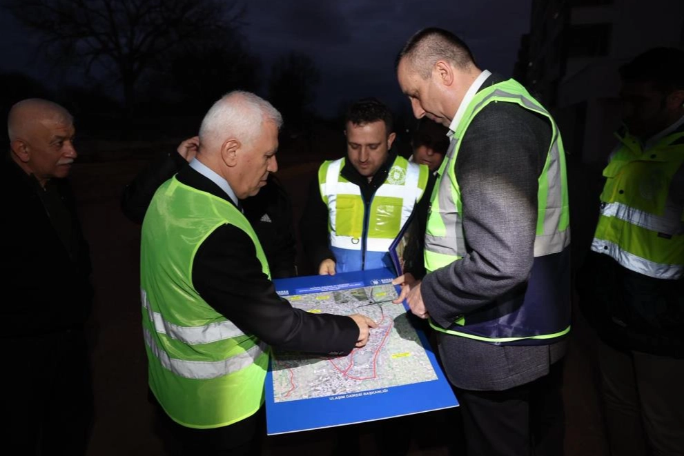 Bursa Büyükşehir Belediyesi, kentin ulaşım sorunlarını azaltmak için gece gündüz demeden çalışıyor.