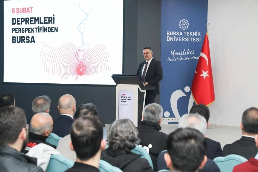 Bursa Teknik Üniversitesi'nde "6 Şubat Depremleri Perspektifinden Bursa" başlıklı program düzenlendi. Mimar Sinan Yerleşkesi Turkuaz Salon’da gerçekleşen programa; BTÜ Rektörü Prof. Dr. Naci Çağlar, Rektör Yardımcıları Prof. Dr. Beyhan Bayhan ile Prof. Dr. Sinan Uyanık, AFAD Bursa İl Müdürü Mehmet Buldan, STK temsilcileri, akademisyenler ve öğrenciler katıldı.