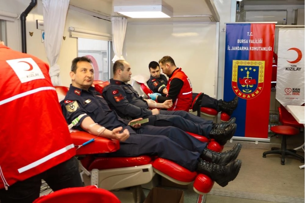 Bursa İl Jandarma Komutanlığı personeli, Türk Kızılay'ın yürüttüğü kan bağışı çalışmalarına katılarak, toplumsal dayanışmaya güçlü bir destek sundu. "Kan Ver, Hayat Kurtar" çağrısıyla gerçekleştirilen etkinlikte çok sayıda jandarma personeli gönüllü olarak kan bağışında bulundu. Sadece güvenlik hizmetleriyle değil, sosyal sorumluluk faaliyetleriyle de öne çıkan Bursa İl Jandarma Komutanlığı, özellikle kış aylarında kritik seviyelere düşebilen kan stoklarına katkı sağlamak amacıyla harekete geçti. Komutanlık yerleşkesinde kurulan mobil bağış alanlarında gün boyunca yoğunluk yaşandı. Gerekli sağlık kontrollerinden geçen rütbeli ve rütbesiz personel, Kızılay ekiplerine destek vererek örnek bir duyarlılık sergiledi. Kızılay yetkilileri, jandarma teşkilatının düzenli ve gönüllü katkılarının kan temini açısından büyük önem taşıdığını ifade ettiler. Bursa İl Jandarma Komutanlığı tarafından yapılan açıklamada, kamu düzeninin sağlanmasının yanı sıra yardımlaşma ve toplumsal farkındalık oluşturan çalışmalara bundan sonra da devam edileceği vurgulandı.