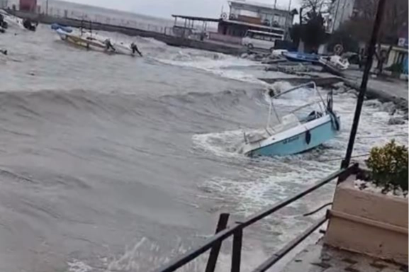 Bursa'da gece saatlerinde etkisini artıran fırtına nedeniyle dalgaların boyu yükselirken, sahilde bağlı bulunan çok sayıda küçük tekne su alarak battı ya da sürüklenerek zarar gördü.