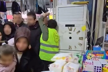 İhtiyacı olup olmadığını sorgulamadan ürünleri kucaklayan vatandaşlar, rafları kısa sürede boşalttı. Kucağında çocuğu ile sıradan içeri giren vatandaş düşme tehlikesi atlatınca, 'yaptığınız yanlış' diye tepki gösterdi.