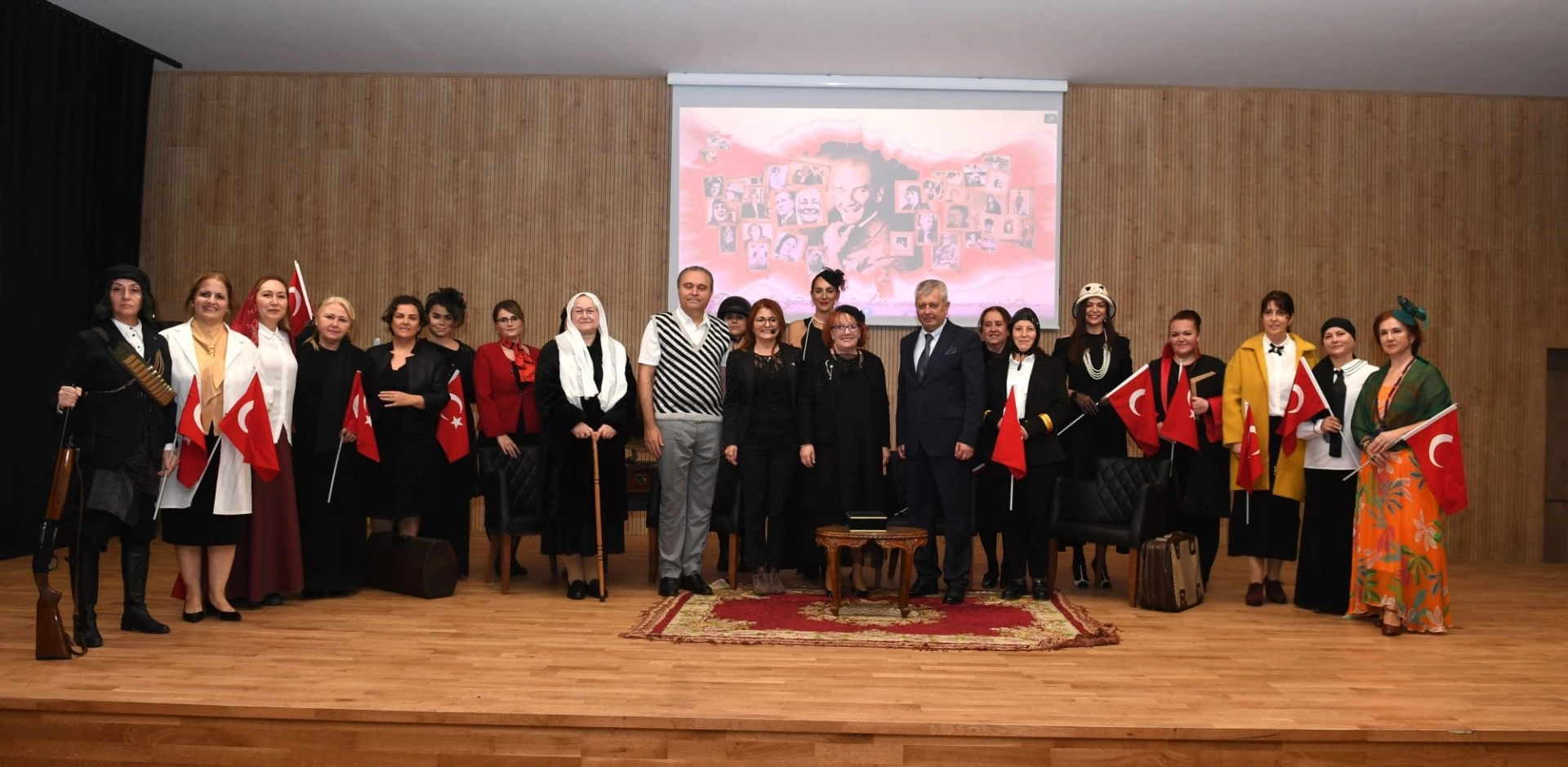 Araştırmacı yazar İlknur Güntürkün Kalıpçı’nın hazırlayıp sunduğu Cumhuriyet tarihinde ilklere imza atan, yaşadıkları çağın ötesine geçen kadınlarının hayat hikayelerinin sahneye taşındığı “Zamansız Kadınlar” tiyatral gösterisi, Osmangazi Gösteri Merkezi’nde sanat severlerle buluştu. 22 Cumhuriyet kadınını Gökdere Rotary Kulübü’nün üyeleri canlandırdığı oyunda, Üsteğmen Kara Fatma, Şuküfe Nihal, Zekiye Hanım, Naciye Hanım, Yıldız Moran, Melahat Ruacan, Keriman Halis, Müfide İlhan, Sabiha Gürayman, Fatma Betül Andak, Vahide Hanım, Dilhan Eryurt, Edibe Şubaşı, Dr. Pakize Tarzi, Leyla Asım, Esin Zenbilci, Semiye Morkaya, Remziye Hisari, Rabia Başokçu, Mihri Müşfik, Latife Hanım ve Zübeyde Hanım’ın canlandırıldığı oyun, bir “kahraman kadınlar” geçidi olarak seyircileri oldukça duygulandırdı. Büyük ilgi gören “Zamansız Kadınlar” oyununun finalinde Zübeyde Hanım ve Büyük Önder Mustafa Kemal Atatürk’ün görselini sahnede gören, izleyiciler hüznü ve heyecanı birlikte yaşadı. Oyunun sonunda İlknur Güntürkün Kalıpçı ile 22 Cumhuriyet kadınını canlandıran Gökdere Rotary Kulübü üyeleri uzun süre ayakta alkışlandı.
