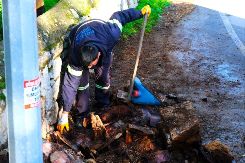Bodrum Belediyesi Temizlik İşleri Müdürlüğü ekipleri, rutin temizlik çalışmalarının yanı sıra kaçak ve izinsiz olarak dökülen çöpler, bahçe atıkları ve hafriyat atıklarıyla da ayrı bir mücadele yürütüyor.
