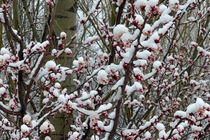 Bir süredir bahar havasının hakim olduğu iç Batı Anadolu kentlerinde çiçek açan badem ve kayısı ağaçları da karla kaplandı. Baharla açan beyaz ve pembe renkli çiçekler tam doğayı renklendirmişken karla beyaza büründü.
