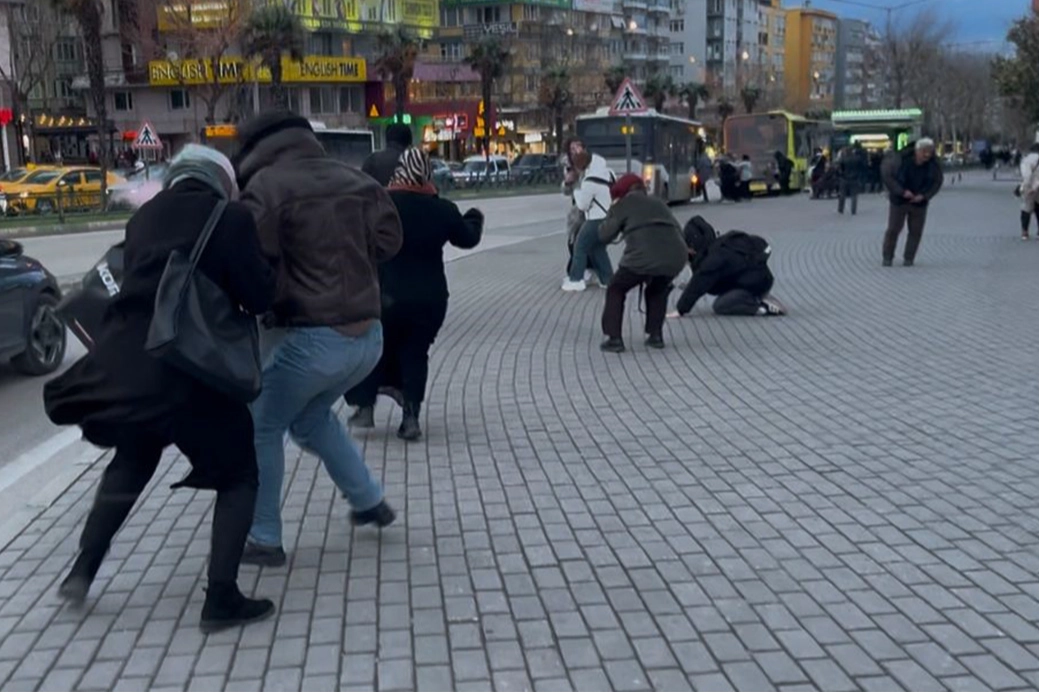 Bursa’da hızı saatte 75 kilometre hıza ulaşan lodos önüne geleni sürükledi. Bazı vatandaşlar uçmamak için yere kapanırken, bazıları direklere tutunup rüzgarın dinmesini bekledi. O anlar İHA kamerasına anbean yansıdı.