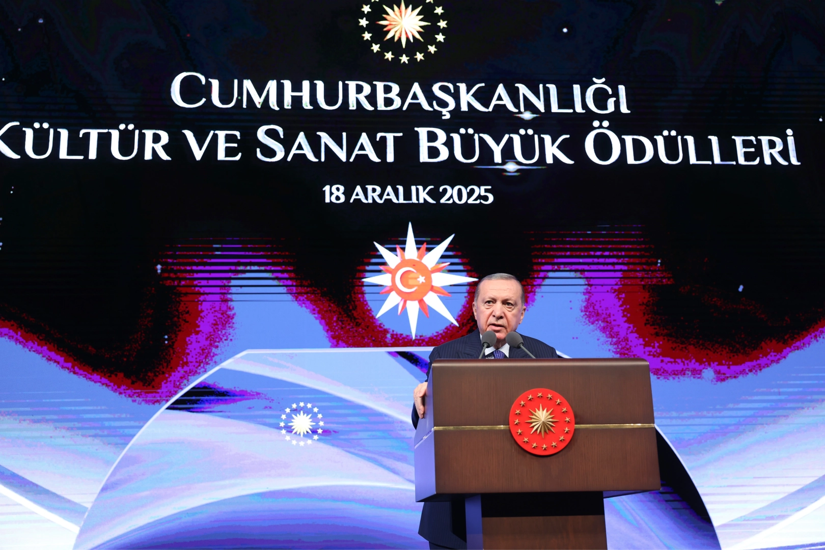 Cumhurbaşkanlığı Kültür ve Sanat Büyük Ödülleri Töreni, Beştepe Millet Kongre ve Kültür Merkezi'nde gerçekleştirildi. Törende konuşan Cumhurbaşkanı Erdoğan, kültür ve sanat dünyasına yönelik önemli mesajlar verirken, Gazze’de yaşananlara ve Filistin meselesine de değindi.