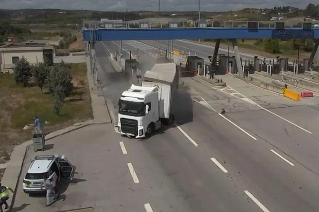 İstanbul’un Çekmeköy ilçesinde, gişelerde meydana gelen trafik kazası güvenlik kamerasına saniye saniye yansıdı. Kontrolden çıkan tırın hızla gişelere girdiği, ardından park halindeki jandarma aracına çarptığı anlar kameraya yansıdı.