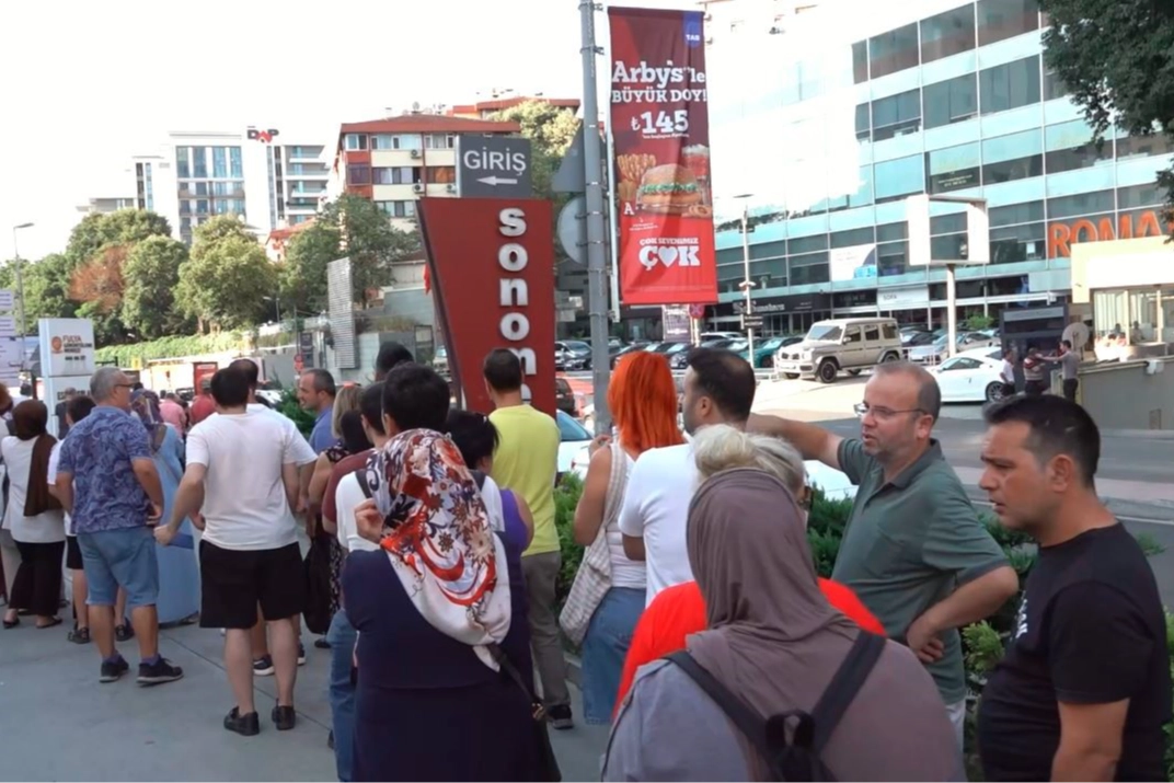 Beşiktaş Fulya’da bir zincir marketin açılışında hediye çeki verileceğini duyanlar 8 saat kuyrukta bekledi. Marketin önünde kilo metrelerce uzunluğunda oluşan kuyruk havadan görüntülendi.