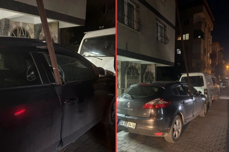 O sırada kaldırımda ve araç içerisinde kimsenin bulunmaması, muhtemel bir faciayı önledi. Yaşanan olayda araç ve bina çatısında maddi hasar oluştu.