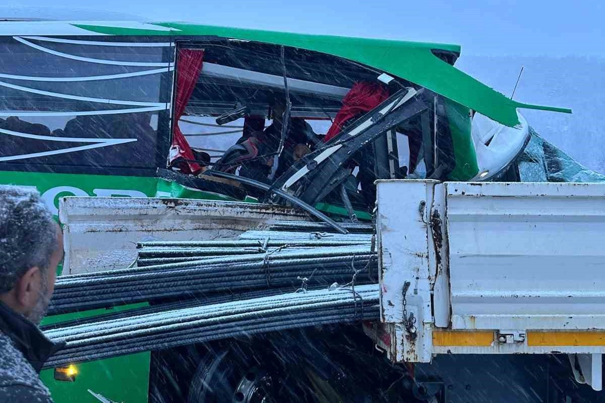 Tokat'ta karlı yolda kayan yolcu otobüsü, bir tıra arkadan çarptı. Kazada 1'i ağır 12 kişi yaralandı.