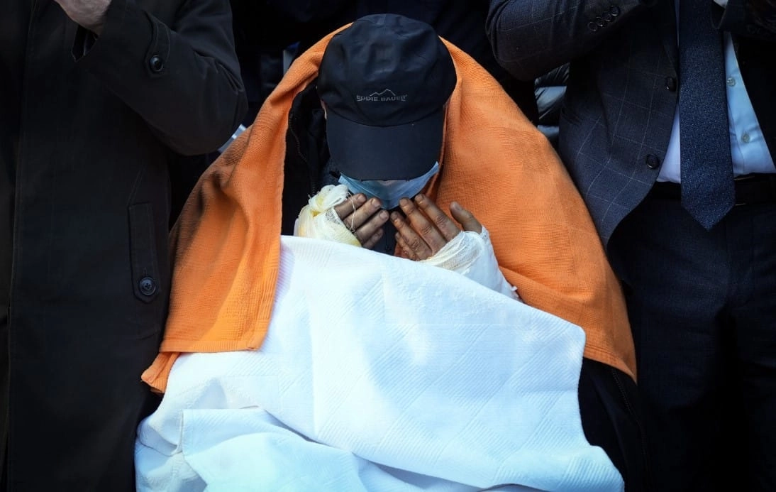Vücudundaki kırıklara aldırmadı, özel izinle eşi ve 2 çocuğunu son yolculuklarına uğurladı