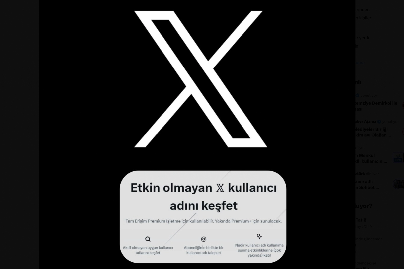 X Handle Marketplace isimli X'in yeni pazarı sadece Premium+ ve Premium Business abonelerine açık olacak. Kullanıcı adları "öncelikli" ve "nadir" olmak üzere iki farklı kategoriye ayrılacak. Değerli ve dikkat çekici kullancı adlarının daha yüksek fiyattan satışa çıkması bekleniyor.