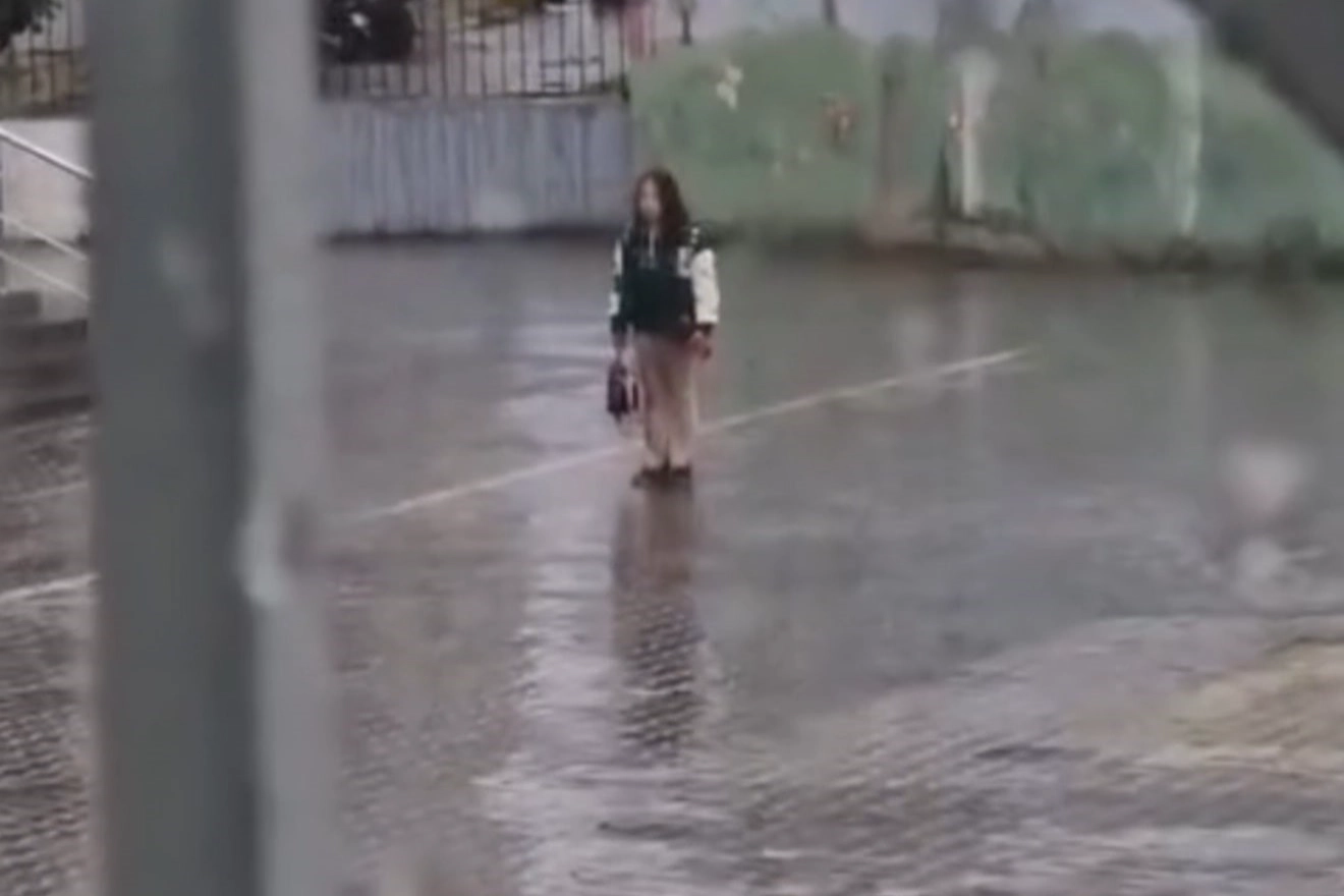 Bu sırada derse geç kalan bir kız öğrenci, okul bahçesinde yağmurun altında bekleyerek marşa eşlik etti. Marş sona erene kadar yerinden ayrılmayan öğrenciyi gören öğretmenler ve diğer öğrenciler duygusal anlar yaşadı.