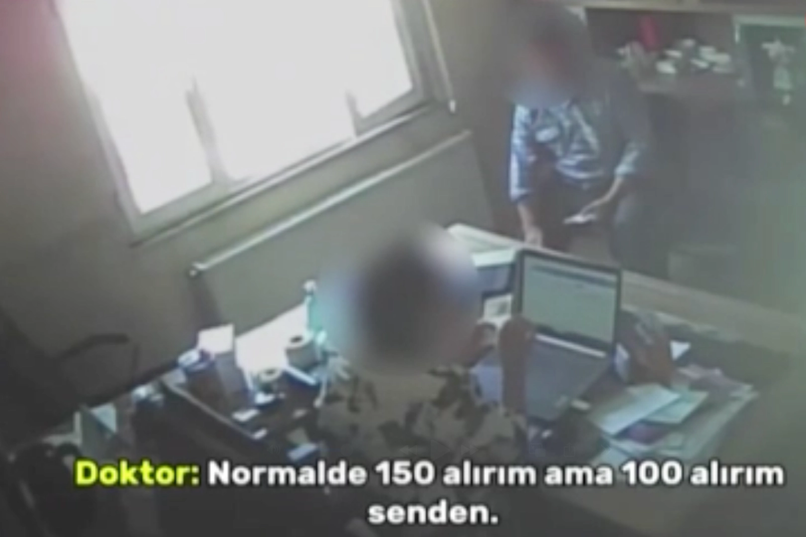 Gaziantep’te bir devlet hastanesinde görev yapan doktor 100 TL'ye ishal raporu satarken yakalandı. Mesleğin yüz karası doktorun para karşılığı sahte rapor düzenlemesi kamera kayıtlarında ortaya çıktı. Görüntülerde doktorun rapor yazması karşılığı hastalardan para istemesi ve jastalığın cinsine göre pazarlık yaptığı anlar dayansıdı. Kayıtrarda, “para almadan rapor yazmam” diyenve aldığı paraları bilgisayarının altına gizlediği görüldü.