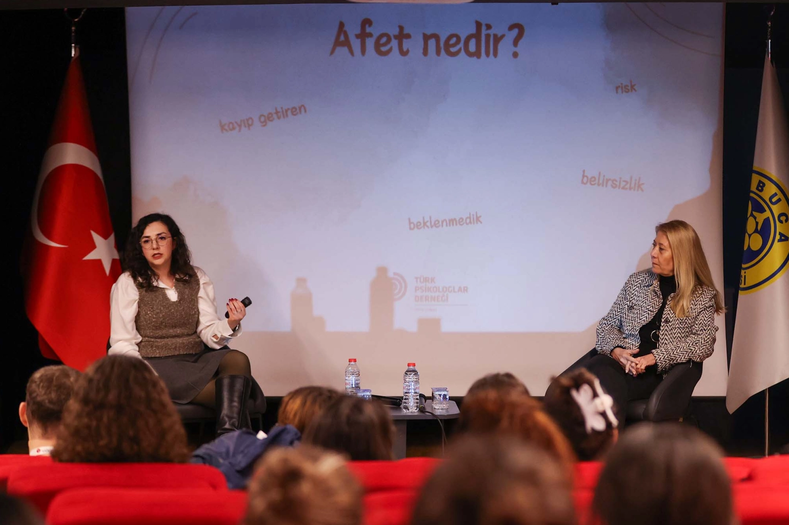 Afetlere karşı psikolojik hazırlığın önemi Buca’da ele alındı. Buca Belediyesi, gençlere yönelik farkındalık çalışmalarına bir yenisini daha ekleyerek psikoloji öğrencilerini afet sonrası psikososyal destek süreçleri hakkında bilgilendiren kapsamlı bir seminere ev sahipliği yaptı.