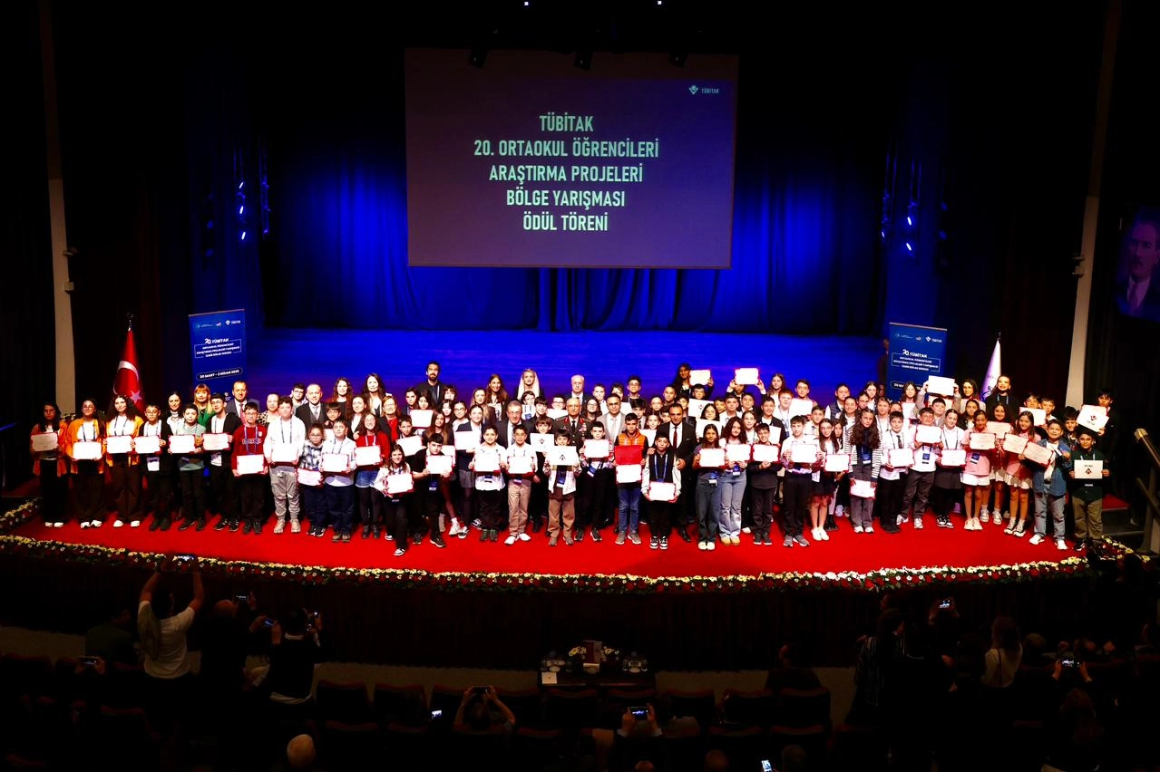 Ortaokul öğrencilerinin bilimsel üretim heyecanına sahne olan TÜBİTAK 2204-B 20. Ortaokul Öğrencileri Araştırma Projeleri İzmir Bölge Yarışması, kapanış ve ödül töreniyle sona erdi. Yarışmada 10 farklı alanda toplam 35 proje ödüle layık görülürken, 77 öğrenci derece elde etti.