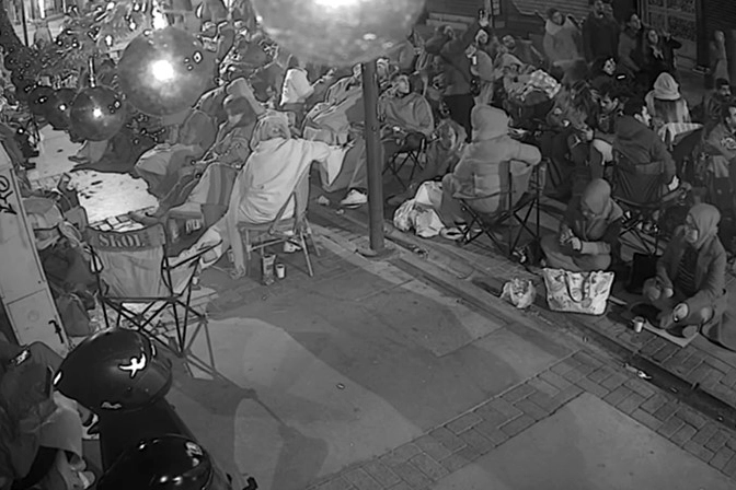 Soğuk havaya rağmen kamp sandalyeleriyle gelen ve sokakta battaniyelere sarılarak sabahlayan vatandaşlar, görenleri şaşkına çevirdi.