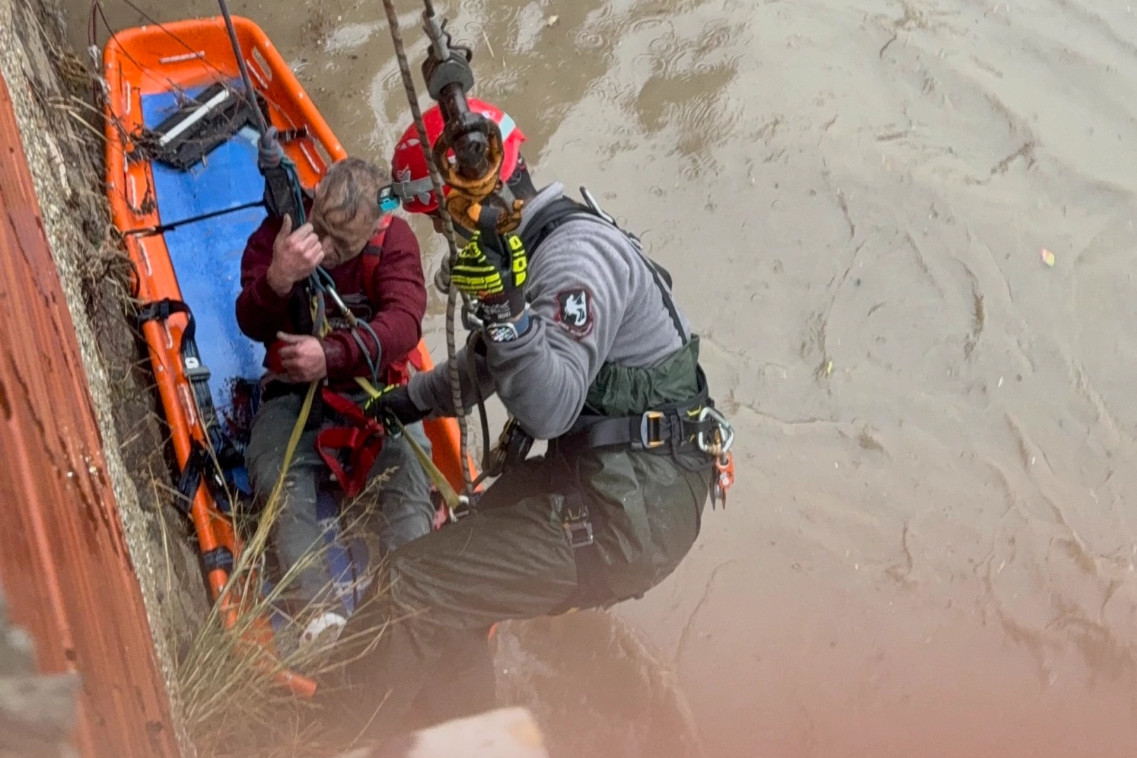 İzmir Büyükşehir Belediyesi İtfaiye ekipleri, dere ortasında mahsur kalan vatandaşı kurtarmak için özel halat ve can güvenliği donanımıyla müdahalede bulundu. Uzun süren titiz çalışmanın ardından C.Ç., mahsur kaldığı noktadan güvenli alana çıkarıldı.