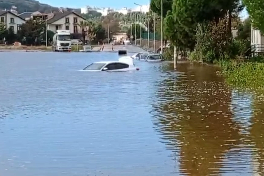 İzmir genelinde sabah saatlerinde etkisini artıran sağanak yağmur ve yeterrsiz altyapı nedeniyle Dikili ilçesinde yollar adeta göle döndü ve park halindeki bazı araçlar su içinde kaldı.
