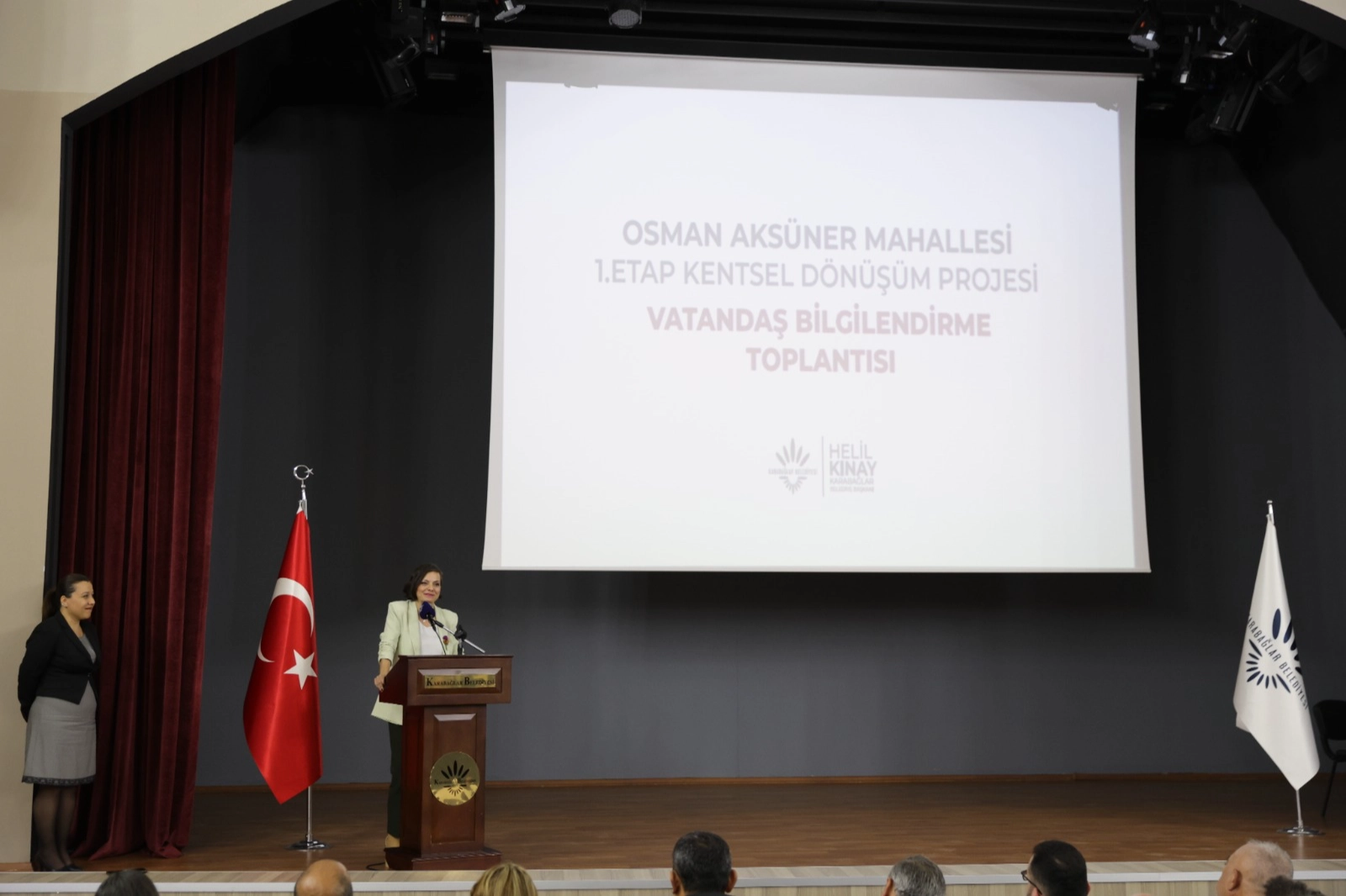 Karabağlar Belediye Başkan Yardımcısı Özlem Şenyol Kocaer ise Osman Aksüner Mahallesi 1. Etap dönüşüm süreci hakkında teknik bilgiler verdi. Kocaer, 236 yapı, 470 bağımsız bölüm ve 381 hak sahibinin bulunduğu bölgede ruhsatsız yapılaşmanın yoğun olduğunu belirterek, “Güvenli konutlara erişim için dönüşümü buradan başlatma kararı aldık” dedi.