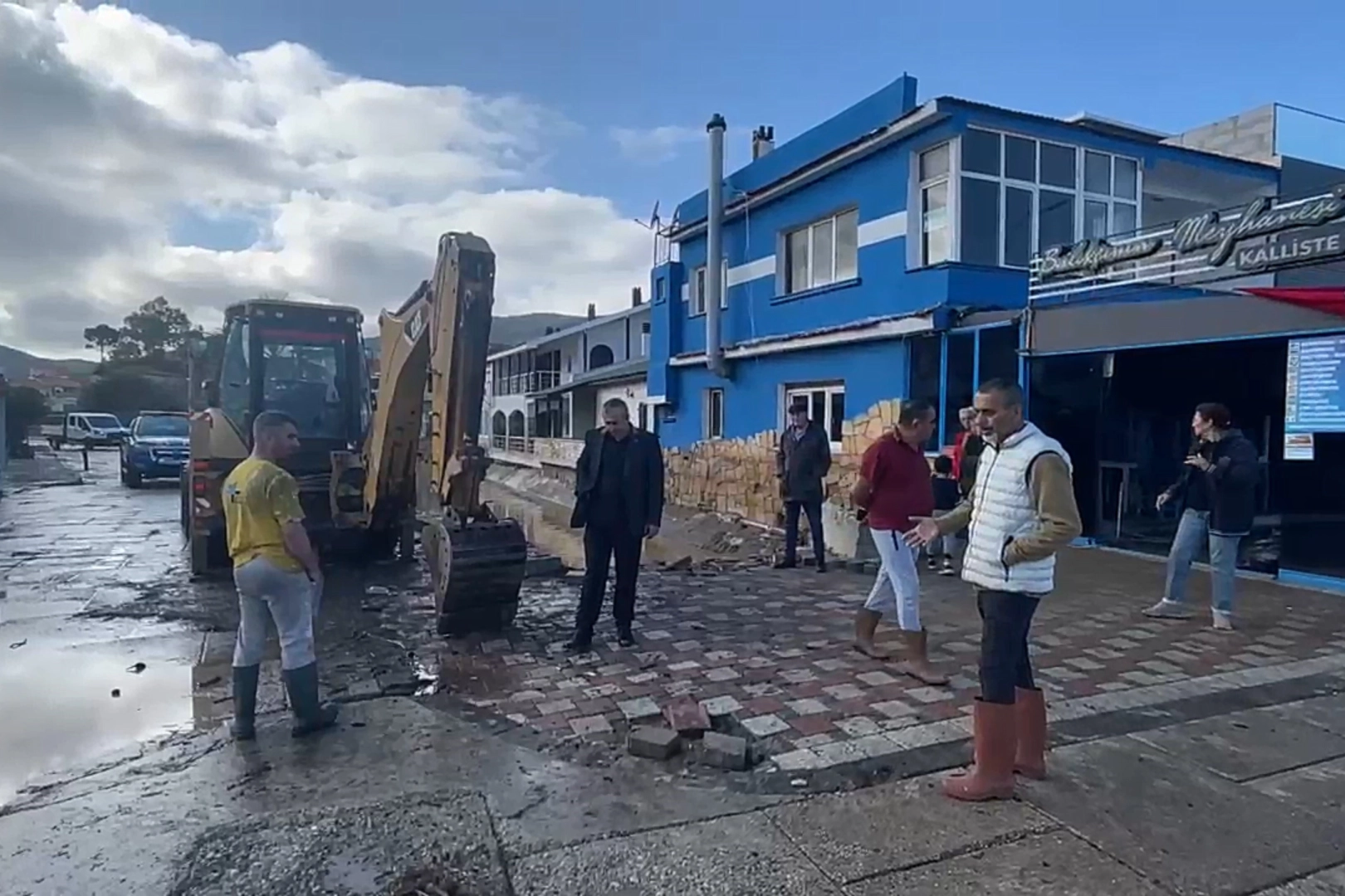 Yeni Foça’da ise derede biriken odun ve çöp parçaları nedeniyle su akışı kesildi, taşan yağmur suları sahildeki bazı iş yerlerine doldu.
