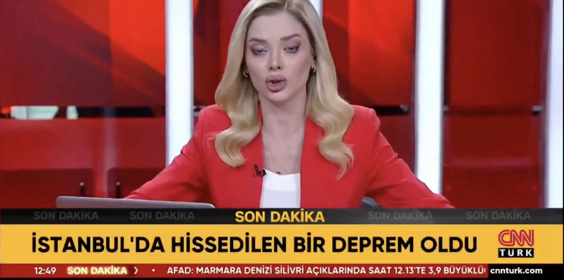 Deprem anında yayında olan CNN Türk kanalı spikeri Meltem Bozbeyoğlu canlı yayın sırasındaki korku ve endişesini gizleyemedi.