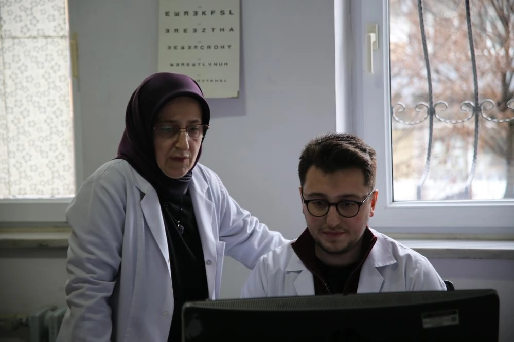 "Hayatımda her zaman annemi örnek almaya gayret ettim"Meslek tercihinde annesini örnek aldığını söyleyen Dr. Ömer Faruk Topsakal, "Çanakkale Üniversitesi'nden 2024 yılında mezun oldum. Buraya atanmadan önce 112 Acil Servisi'nde görev aldım. Sonrasında da biraz annemi de örnek alarak aile hekimliğine geçtim. İlk mesaimizi yaptık, aslında daha çok taze. Birlikte çalışmak çok güzel, alışmaya çalışıyorum. Sisteme adapte olmaya çalışıyorum. Annem burada yaklaşık 17 yıldır çalışıyor. Küçükken kardeşimle buraya oyun oynamaya da gelirdik. Çocukken burada güzel vakitler geçirmiştik. Annemi örnek alıyordum. Hem meslek seçimimde olsun hem de burayı tercih açısından da onun izinden gittim. Özverili çalışarak ve hasta bakma açısından da her zaman annemi örnek almaya devam ediyorum. Kahvaltı yapacaksak eğer evde beraber yapıyoruz, ama bazen de yapmıyoruz tabii ki. Bazen de buraya vardığımızda yapıyoruz atıştırıyoruz. İşe yeni başladığım için annem bana çok yardımcı oluyor. Zaten odalarımız da yan yana oldu. Üniversiteden arkadaşlarım da ilk önce şaşırdılar, güzel tepkiler aldım herkesten. Annemin emeklilik düşünceleri vardı ama belki ben geldiğim için bu fikrini erteleyebilir" dedi.