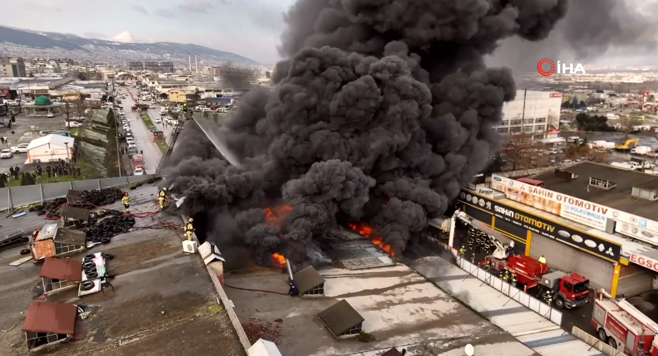 Bursa'nın Yıldırım İlçesi Yiğitler Mahallesi sınırlarındaki Otosansit Sanayi Bölgesi'nde faaliyet gösteren bir otomotiv yağı satan firmanın deposunda henüz belirlenemeyen bir nedenle yangın çıktı. İçeride bulunan yağların alev almasıyla alevler depoyu yutarken, gökyüzünü kara bulutlar kapladı.